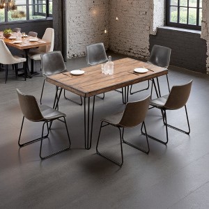 • INDUSTRIAL VERSATILE STYLE: Aryven collection dining set embodies authentic industrial charm with a minimalist design that prioritizes comfort and functionality. Clean metallic lines pair seamlessly with natural rustic dark pine, effortlessly complementing farmhouse, modern, or eclectic home decor—no need to redo your space to make it fit!
