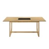 Spacious Rectangular Dining Table Design The table measures 35"D x 71"W x 30"H, offering ample surface area for meals and socializing. It features a fixed tabletop with a sturdy double U-shape base, ensuring stability and a modern aesthetic.