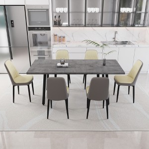 7-Piece Expandable Dining Set with Rectangular Table and 6 PU Armless Chairs