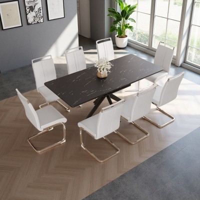 • 7. Adjustable length makes this table perfect for various occasions, from intimate family dinners to festive gatherings with friends. Transform your dining area into a hub of contemporary style and functionality with this sleek and spacious table.