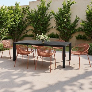 Rust-Resistant Aluminum Frame: The dining table is constructed from lightweight, durable aluminum that resists rust, ensuring longevity and easy portability, ideal for outdoor environments.