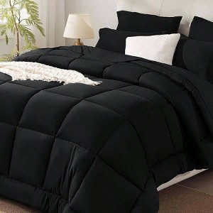 Full/Queen Comforter Set - 7 Pieces Black Bed in a Bag, All Season Soft Comforters, Queen Size Bedding Includes 1 Comforter, 1 Flat Sheet, 1 Fitted Sheet, 4 Pillowcases