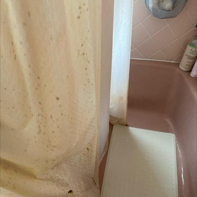 I’ve had fabric shower curtains that don’t have the plastic liner. They were not as effective. The shower curtain seems to protect and prevent water from splashing outside of the tub. Other reviews have mentioned that it does mildew fast. Yes, I did see some of the pinkish reddish mildew up here pretty quickly. But my big question is, which side faces towards the inside of the tub versus the backside of the shower curtain? I suppose if you’re using this liner by itself the decorative Fabric side faces and plastic side faces. But is that the same case if I’m using it with the shower curtain? Which side of the fabric liner faces the tub versus the backside of the shower curtain that I have placed in front of the liner? Front: 100% recycled polyester; Back: Polyethylene