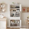 Introducing our 70" Tall Kitchen Pantry Cabinet with Countertop, the perfect storage solution for your kitchen, bathroom, office, or living space. This modern wooden cabinet combines style and functionality to keep your home organized and clutter-free. Crafted with high-quality materials, this tall cabinet offers ample storage with multiple shelves, a spacious drawer, and doors that conceal your items neatly.