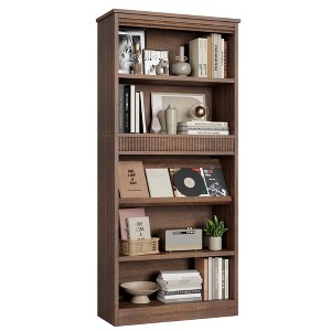 - 【Retro Wood Grain & Fluted Design】The 5-tier bookshelf features a unique fluted design, combined with retro wood grain surfaces, adding a touch of rustic charm to the farmhouse look, It combines farmhouse style with modern, which is suitable for all kinds of home decoration. Beautifully crafted and exquisitely wooden bookcase adds charm to your living space