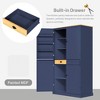 - (Adjustable Shelving for Flexible Storage)Designed with 2 adjustable shelves, each with 3 height options, this tall pantry cabinet lets you customize your storage layout for everything from cookware to cereal boxes. The four-section interior design keeps all your essentials organized and within easy reach.