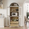 - Multi-Functional Use: This arched bookshelf with doors and drawers adapts to diverse needs, It can be used as a kitchen or dining room pantry cabinet, an open display rack of collections in your living room, or a bookshelf in the study room or home office. It also fits perfectly into the bedroom, dining room, apartment, bathroom, balcony, and any other space.