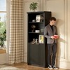 - Standing 71 inches tall with fluted doors and a sleek wood-grain finish, this bookshelf exudes mid-century modern elegance, adding a sophisticated touch to living rooms, home offices, or bedrooms while complementing a variety of decor styles.
