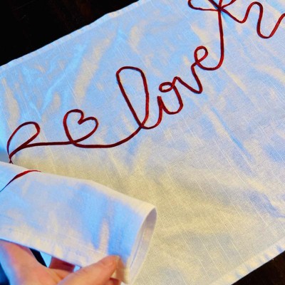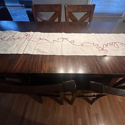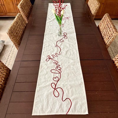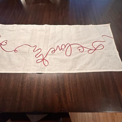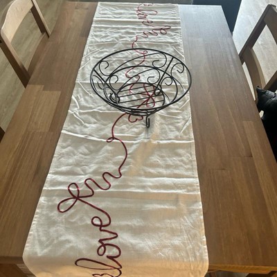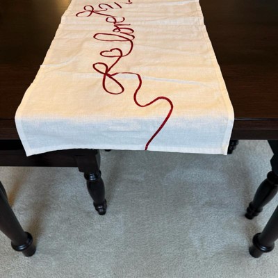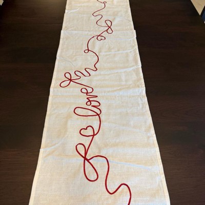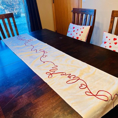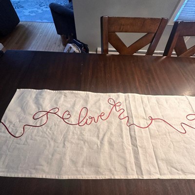 [This review was collected as part of a promotion.] This table runner looks way more expensive than it is, and it instantly made my table feel dressed up for the upcoming Valentine holiday. The color definitely appears more cream than white. The material is on the thinner side, but it doesn’t make it feel cheap at all. It lays nicely, it might need to be steamed a little, but it is simple, festive and an easy way to add a Valentine’s touch without going overboard.