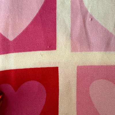 I love it! It’s really pretty, colors stand out and is thick cloth. I was a bit mislead with the photo because I thought the back would be light pink with small hearts?