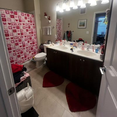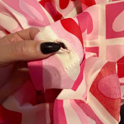 [This review was collected as part of a promotion.] This shower curtain adds a fun pop of color to the bathroom. The pink and red heart pattern is perfect for Valentine’s Day but also playful enough to use year-round. The fabric is lightweight and hangs nicely once it’s up. I really like the reinforced grommet holes, which feel sturdy and well-made and make it easy to hang.