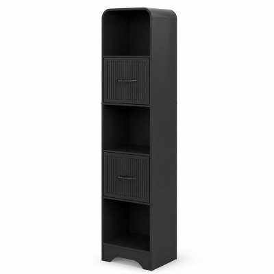 72" Endry 3 Shelf Display Shelf Gray/Sandy Black - miBasics: Transitional Style, MDF & Metal, with Drawer