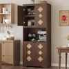 72" H Kitchen Pantry Cabinet with Open Shelf, Crystal Knobs, Microwave Stand & Adjustable Storage