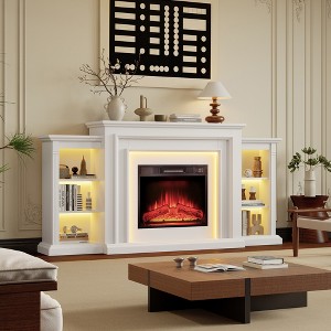 Elevate your living space with this versatile electric fireplace mantel. It delivers consistent warmth to areas up to 400 square feet and features automatic shut-off and overheat protection, making it ideal for families with children or pets. With two side storage cabinets and a top platform that accommodates up to an 80-inch TV, it helps you organize media equipment neatly. No complex installation is needed—simply plug it in and use the included 26-foot remote to easily adjust the flame brightness and temperature for instant ambiance. The beautifully carved lines add depth and elegance to your home decor.