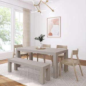 72" Modern Solid Wood Dining Table Set with Bench, Seashell Wirebrush, + 4 Chairs Blonde