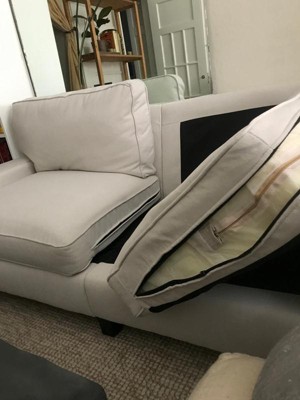 I have had this sofa for almost ten months. The Velcro attaching the bottom cushions literally caused the zipper to burst while sitting on it (I am a light person). I contacted customer service over a month ago since I’m within the one year warrently claim for defects and they are still “reviewing my case.” Can not recommend at all - it’s quite an expensive item for what you’re getting. It might look like a decent quality sofa but is not well constructed and the back pillows are also very cheap and don’t hold their shape. Would have expected so much more from Serta and Target.