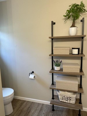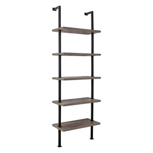 Review of Theo Wood Ladder Bookshelf Gray Oak-Matte Black / 5 Shelves
