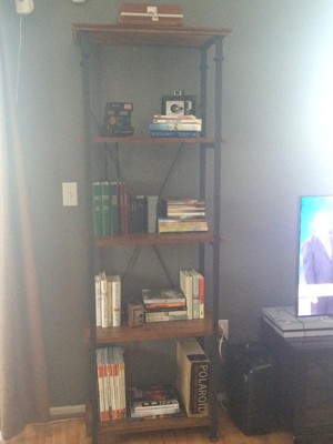 This bookshelf offers a stylish and sturdy design that fits well in various home settings, particularly for those seeking a rustic industrial look. Guests appreciate its easy assembly and overall quality, although some have noted minor issues with shelf alignment and pre-drilled holes. Despite these concerns, many find it a great value for the price, making it a popular choice for enhancing home decor.