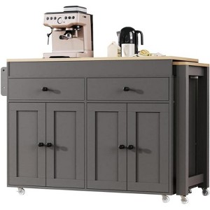 74.5" Rolling Kitchen Island Cart on Wheels—Extendable Table, Spice Rack, 2 Drawers, 4 Doors; Grey Trolley for Home, Kitchen, or Garage