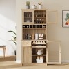 75" Tall Kitchen Pantry Cabinet with Glass Doors, Natural Freestanding Buffet Hutch for Kitchen, Dining Room, or Living Room-Panipeachy