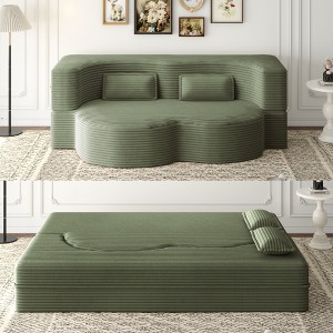 78" Full Size Plush Corduroy Floor Sofa Bed with Foam Support, Convertible Folding Sleeper Couch Space-Saving Guest Bed, No Assembly Required