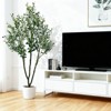 Enhance your living space with this lifelike artificial olive tree that perfectly mimics real olive plants. Featuring realistic leaves, fruit, and a natural wood trunk, this faux plant brings a touch of nature to any room without the need for watering or pruning. Its stable base ensures it stays upright, while the weather-resistant materials make it suitable for both indoor and outdoor settings. Enjoy effortless greenery and beauty year-round without any maintenance.