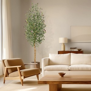 5/6/7ft Artificial Olive Tree - White Pot with Natural Wood Trunk & Fruits, Lifelike Faux Tree for Indoor Home Decor
