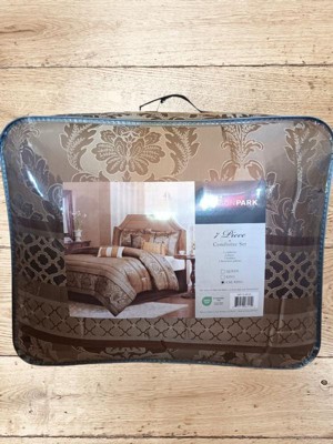 7pc King Mirage Polyester Jacquard Comforter Bedding Set Brown: Madison Park, Embroidered, Pleated, Machine Washable
