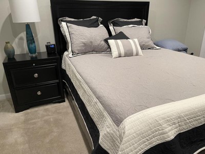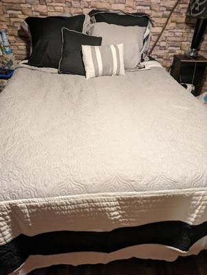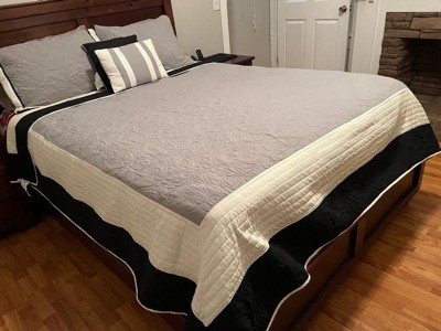 Q: I am looking at the 7 piece Longmont coverlet set that is beige or black. what are the actual colors of the "black" set? specifically is it white or ivory and is it charcoal or black ?