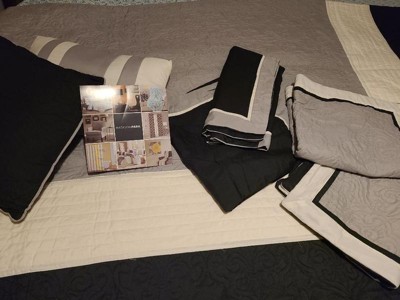 - Set includes 1 quilt, 2 euro shams, 2 matching shams and 2 decorative pillows