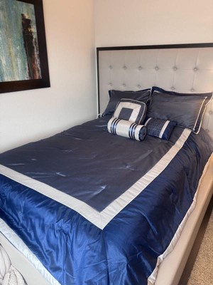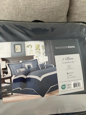 Madison Park 7pc Queen Beverly Polyoni Comforter Set - Navy: Hypoallergenic, Machine Washable