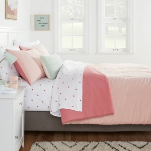 7pc Queen Solid Microfiber Reversible Comforter & Sheets Set Light Pink/Rose Pink - Room Essentials™: OEKO-TEX Certified