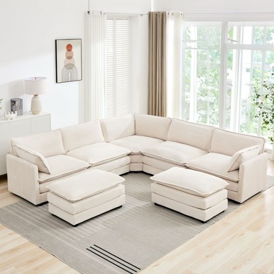 7pc Restore Sectional Sofa White - Modway: Upholstered Fabric, Minimalist Design, French Piping