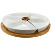 Elama 7pc Stoneware Beautiful Sectional Party Serving Set White - Elama: Round Divided Servers, Bamboo, Microwave & Dishwasher Safe