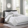 [This review was collected as part of a promotion.] This Madison park 7 piece comforter set is very nice and clean. I like the modern look. It comes with a white comforter, 2 white shames, a white bed skirt, and three decorative pillows. Overall this set is worth buying. If you are looking for clean, contemporary bedding this is a good option. I haven’t tried washing it, so I can’t say how well it holds up. I gave it 4 stars because some of the threading was coming out, and the comforter material is a little noisy. Overall I like it.
