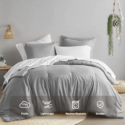 7Pcs Comforter Set, Modern Solid Bedding Set, Cotton Bed Comforter, Grey, Queen