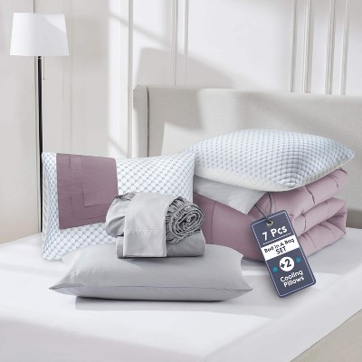 7Pcs Comforter Set, Solid Bedding Set, Cotton Bed Comforter, Purple, Cal King