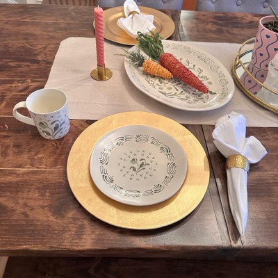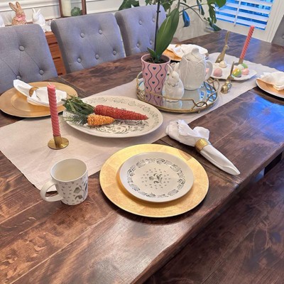 I love the design of this festive spring time decorative plate. It makes a wonderful place holder for a table. The design is beautiful but it isn’t painted glaze. Instead it seems to be a printed design which may fade with time. It’s a great value for the price and is perfect for spring time. I receive compensation to write this review.