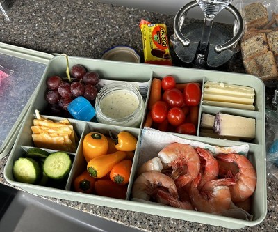 This snackle box is great. I’ve used it many times for outdoor festivals, boating activities and anytime snacks or charcuterie options are needed. Travels well and you just open and the presentation is great. Would be great for kids games such as baseball etc when dinner is always a rush.