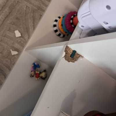 Literally the first day after putting it together, my toddler went to reach for a toy on the shelf and put his weight on the shelf with one hand and it came breaking apart. Mind you, my toddler is only 28 lbs and hardly put any of his actual weight on it. Super disappointed in how cheaply this was made.