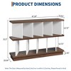 - [CUBE ORGANIZER] 8-Cube design with 8 square. Cubby storage organizer (47.24 in L x 11.61 in W x 31.50 in H) features 8 spacious compartments, providing ample storage for books, toys, office supplies, and more.
