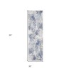8' Ivory Blue And Gray Abstract Runner Rug