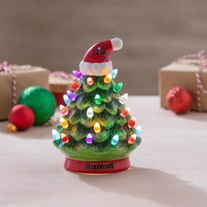 NFL Tampa Bay Buccaneers Ceramic Christmas Trees That Light Up | 8" LED Vintage Christmas Tree | Officially Licensed Team Logo | Tabletop Décor