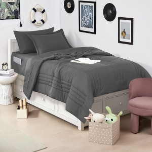 6 Piece Quilted Solid Stripe Comforter, Sheet Set and Mattress Protector Bedding Bundle - Twin XL, Charcoal