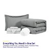 6 Piece Quilted Solid Stripe Comforter, Sheet Set and Mattress Protector Bedding Bundle - Twin, Grey/Silver