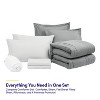 8 Piece Quilted Solid Stripe Comforter, Sheet Set and Mattress Protector Bedding Bundle - Queen, Grey/Silver