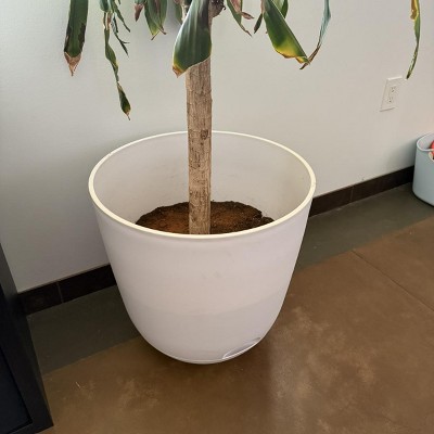 This self watering plastic indoor planter pot is absolutely perfect!!! Lightweight, nice size and looks sustainable.
