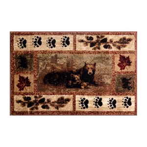 Masada Rugs Cabin/Lodge Area Rug Mat with Bear and Cub Scene