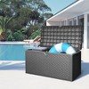 Transform your outdoor space with this versatile storage box that's perfect for organizing patio essentials, garden tools, sports equipment, pool supplies, and more. The sleek gray design features a vertical plank pattern that adds modern style to any outdoor setting. Built for durability and functionality. The compact footprint of 43.3"x22.4" makes it ideal for patios, decks, or balconies where space is at a premium. Whether you need extra seating for guests or weatherproof storage for outdoor cushions and accessories, this multipurpose storage box delivers both form and function. Its neutral color scheme and clean lines complement any outdoor décor while helping keep your outdoor living space tidy and organized.