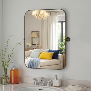 Overall Description: This multi-functional 80cm black iron rectangular mirror features double-sided surfaces, rounded corners, rotating hardware, and a sturdy frame, offering versatility, elegance, and durability for any room.